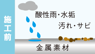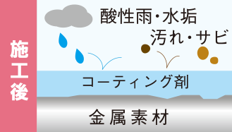 ガラス被膜が基材を覆うことにより、酸性雨や塩害、錆び等による劣化を抑制します。