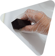 専用スポンジ、またはウエス等で均一に薄く塗り伸ばすように塗布します。